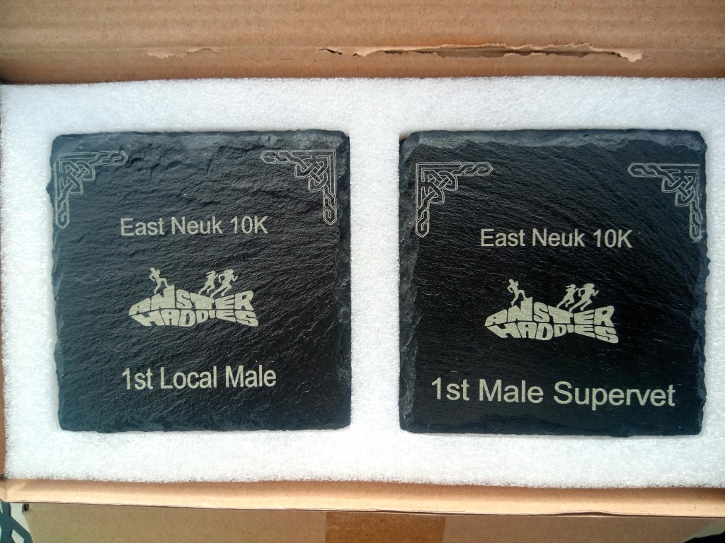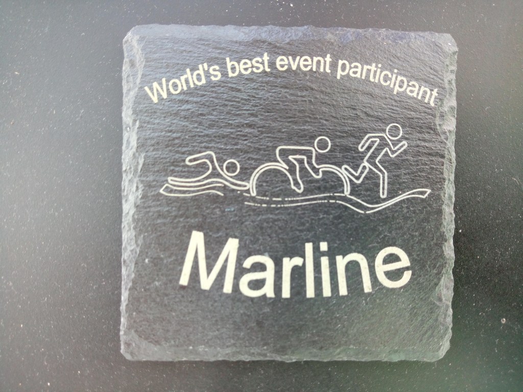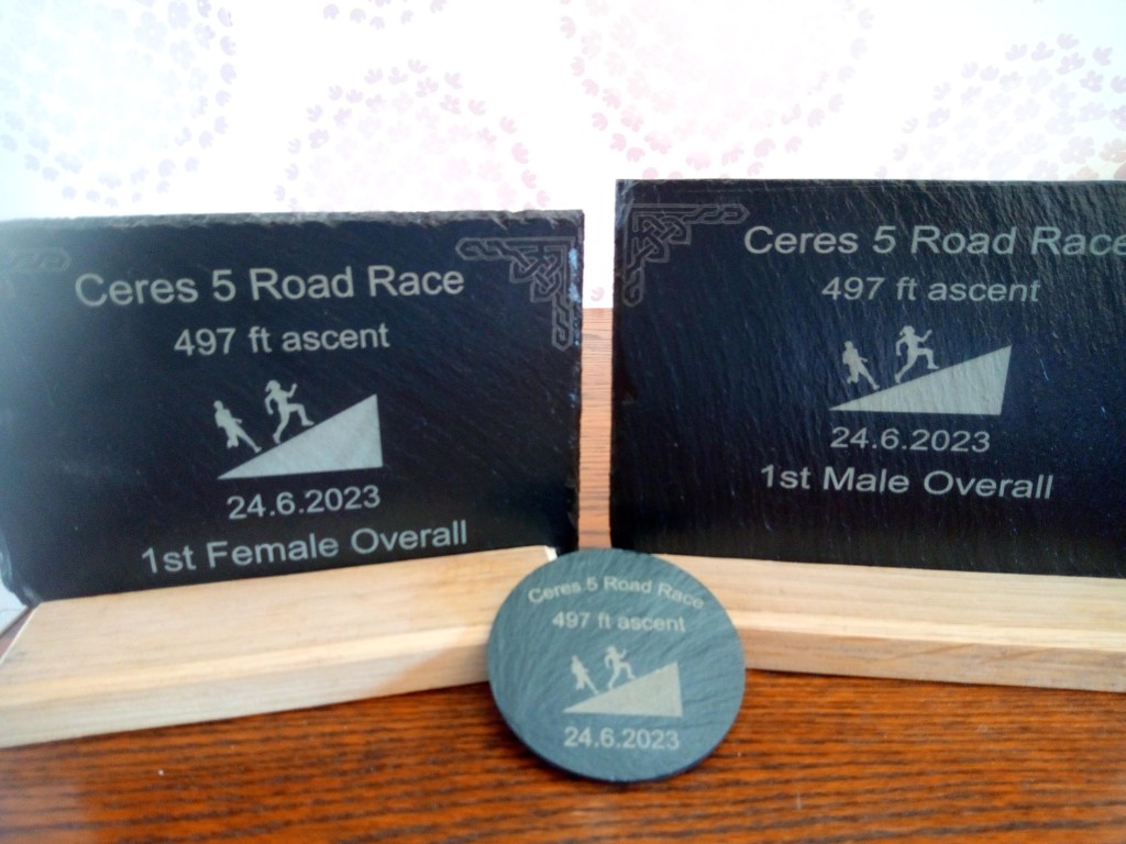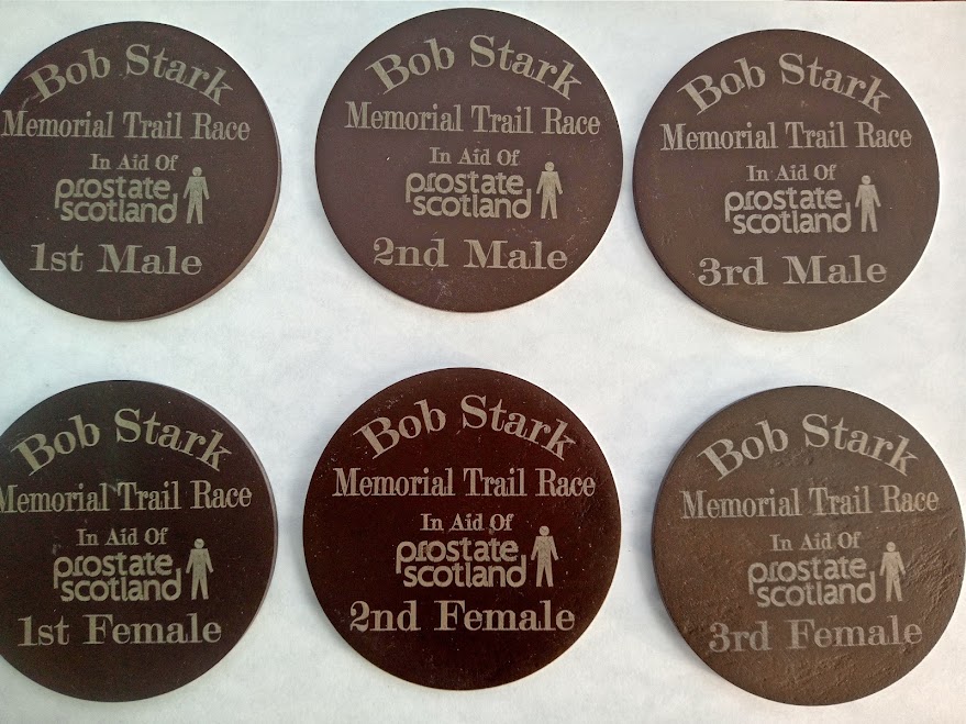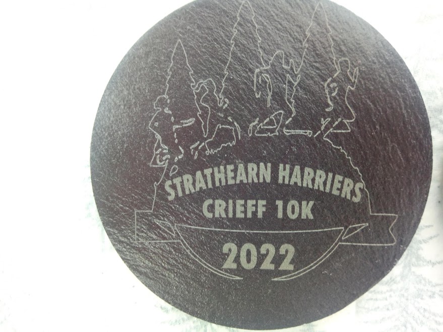 Our designs are bespoke to your needs. We specialise in slate & wood, laser etching to achieve a unique momento of your event. Medal sizes are 10cm dia also we have 10cm squares, all these have felt backing & can be used as coasters for that well earned glass of wine after the race.